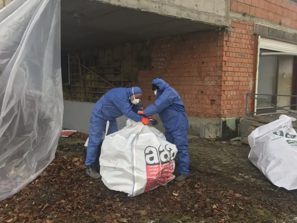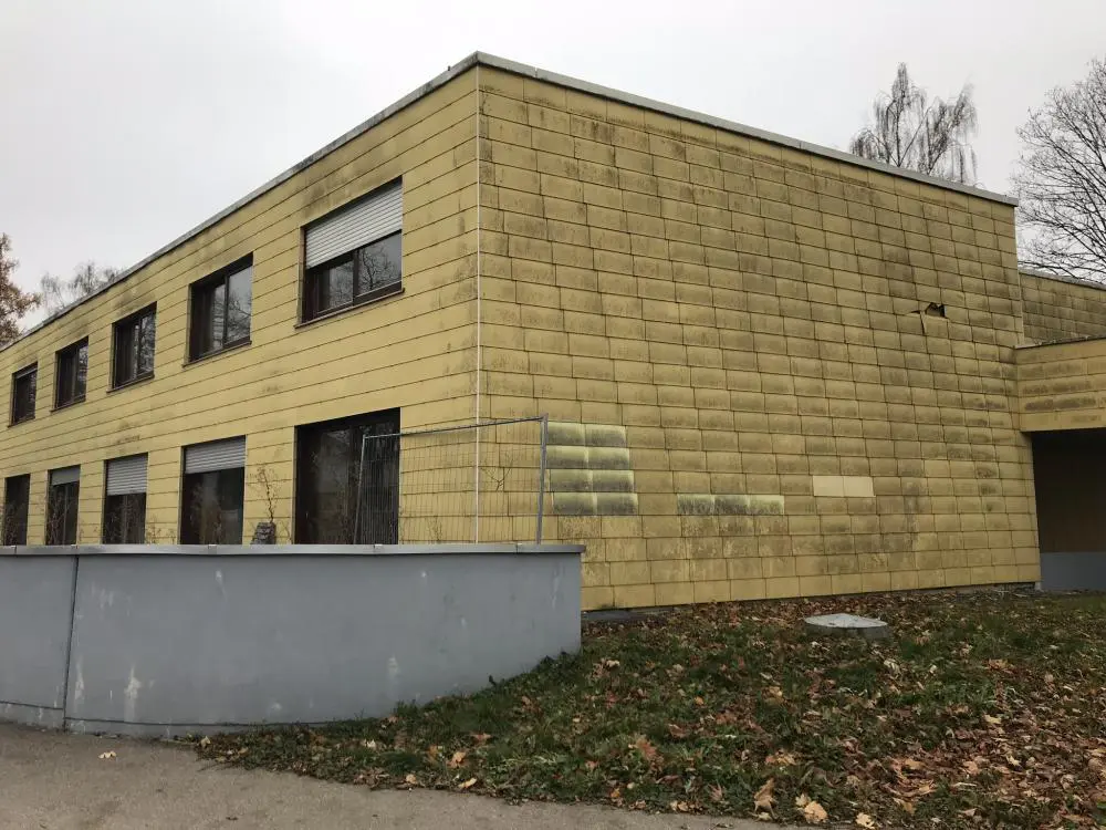 Demontage von knapp 1.000 m² asbesthaltigen Fassadenplatten inkl. Mineralwolldämmung und Konterlattung nach den Vorschriften der Gefahrenstoffverordnung TRGS 519. Demontage von Asbestplatten an Zimmerdecken überkopf und sämtlichen asbesthaltigen Rohren und Lichtschächten. Meldungen beim Gewerbeaufsichtsamt und der Berufsgenossenschaft.